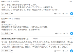 韓国サッカー協会にも同国のファンなどから開催への抗議が殺到しており、公式SNS上では「日本は放射能天国、コロナ天国だ。(日本遠征で)誰が喜ぶのか」「(試合会場の)横浜は大地震の予想地域だ」などと罵詈雑言の嵐となっている。