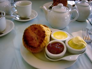 アメリカのビスケットは塩味で、イギリスのスコーンにはチーズが入っていることもあるけど、基本甘くて、クロテッドクリームが添えられている。