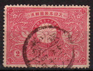 このデザインは皇室の家紋である菊の紋章に、雌雄の鶴2羽が描かれたもの。
