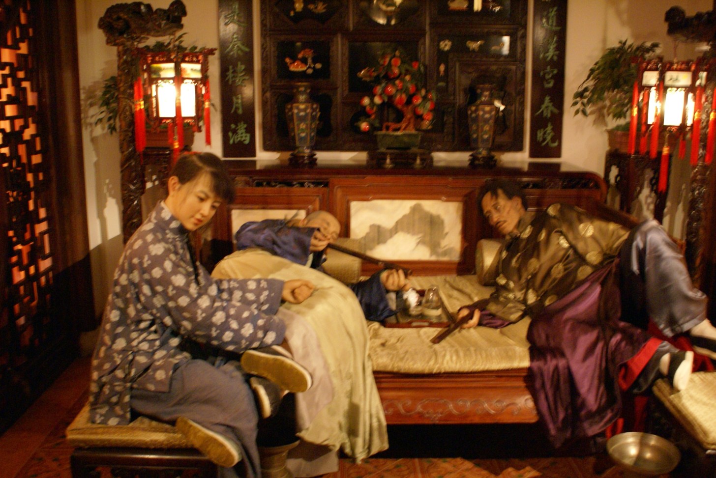 *この記事のトップ画像は上海の博物館に展示されていた、アヘンを吸う20世紀初頭の中国人のようす。