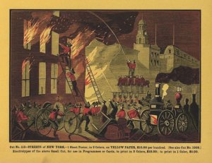 「これ等の家の大部分は、燃えつつある。低い家屋の長い列の屋根は、英雄の如く働き、屋根瓦をめくり、軽い杮板をシャベルで落し、骨組を引張ったり、切ったりしてバラバラにしている消防夫達で、文字通り覆われ」