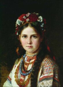ヴィシヴァンカを着るときには、花輪の「ヴィノク(Вінок)」を頭にのせることが多い。この頭飾りもウクライナの代表的な伝統文化なんだ。「イワン・クパーラ」という夏の祭りで、ヴィシヴァンカとヴィノクを身に着けた女性を見ることができる。ふだんの生活でも、結婚式でその格好をする人もいるけどね。