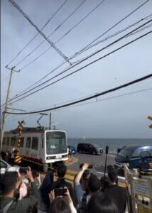 主人公の桜木花道が、この踏切の前で江ノ電が通るのを待つシーンがある。今では世界中の人々がここに来て、江ノ電が来るのを待ちながらスマホを向けている。