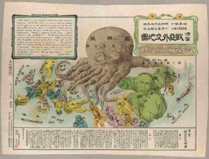 当時の慶應大学の学生が描いた反ロシアの地図には、ロシアがタコの姿で描かれている。