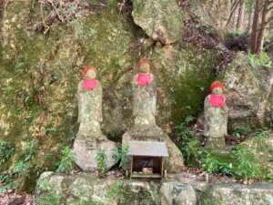 登山道の入口に三体のお地蔵さんがあって、国籍や宗教で差別することはないはずなので、地蔵菩薩にパーティー全員の無事をお祈りした。日本の登山道では地蔵をよく見かける。その理由をAIに尋ねると、旅の安全祈願や亡くなった人の霊を供養するためとのこと。
