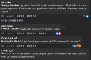 「日本が嫌われる理由なんて、聞く必要があるのか? 第2次世界大戦中の彼らがした残酷な行為は、ドイツ軍がやったことが子どもの遊びに見えるほどだ。あなたは本当に歴史を研究する必要がある。」