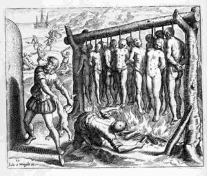 キリスト教の救世主(イエス)とその十二使徒への敬意を表すため、13人の先住民を絞首台に吊るし、その下で火を起こし、彼らが灰になるまで焼き尽くしたという。