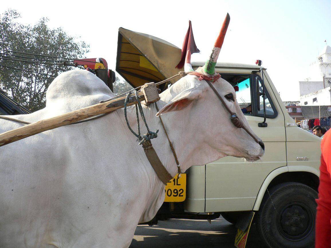 インドを旅行していたとき、首都デリーの街中を歩いていると、牛車とすれ違った。