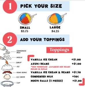 日本風のかき氷に、モチやアズキをトッピングするのがマツモト式シェイブアイス。