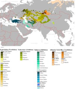 チュルク語を話す民族を「テュルク系民族」と言い、その中にトルコ人(民族)がいる。トルコ人のルーツは中央アジアの遊牧民にあるため、知人のトルコ人は中学生のとき、歴史の授業で先生から「私たちはチンギス・ハーンの子孫です」と教わったという。