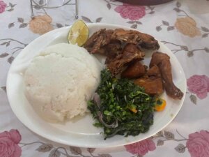 アフリカの伝統的な食べ物「ウガリ」(白くて丸いやつ)