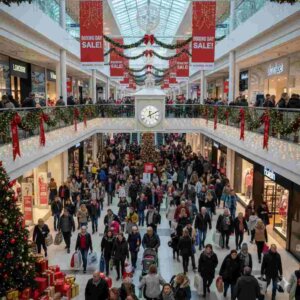 ショッピングモールは買い物客でにぎわい、一年を通じて最高の売上を記録する店もある。