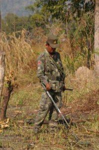 地雷の除去作業をしているカンボジア軍の兵士(たぶん)