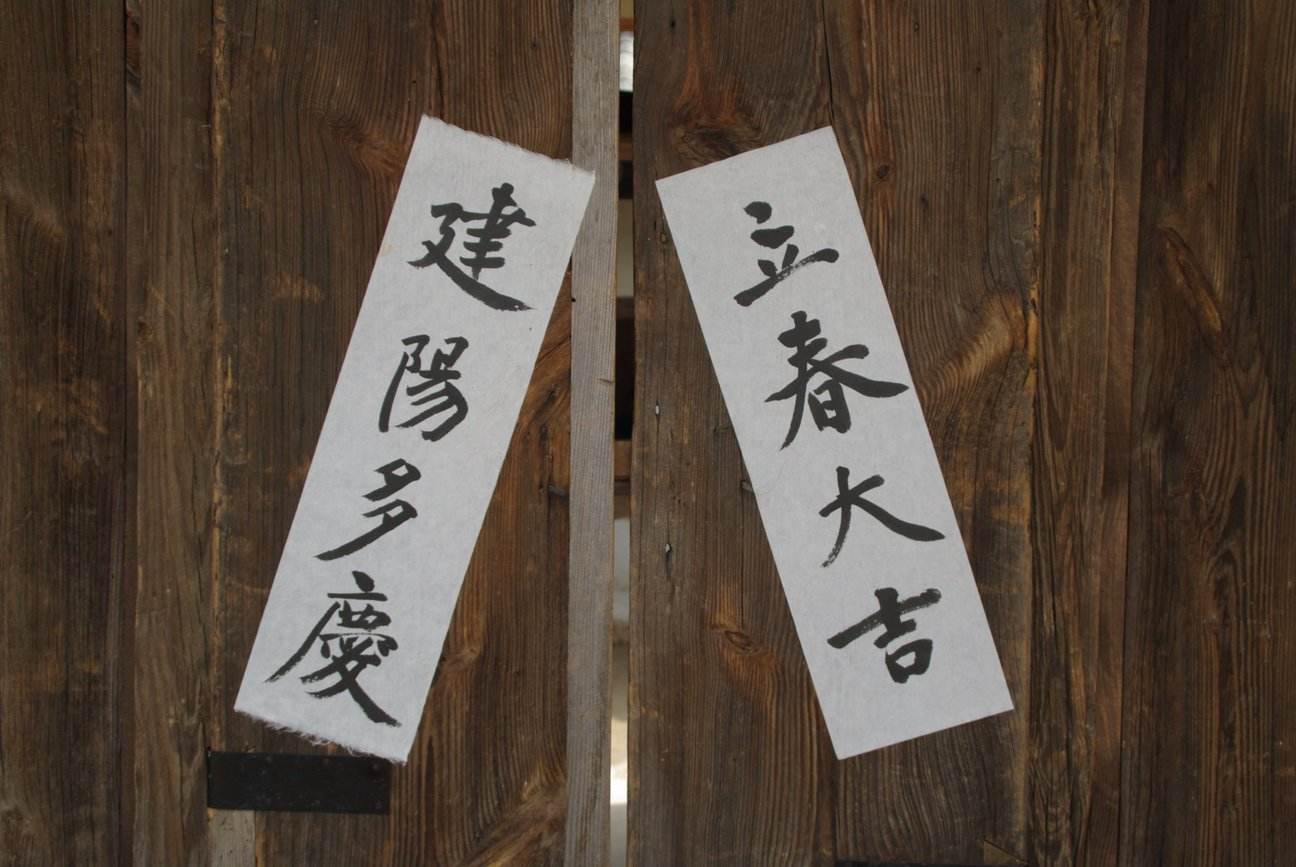 「春が立つ」とは新春の始まりを意味し、「大吉」は最大の幸運を表している。新しい年が幸せに満ちたものになることを願って、家の入口や柱に「立春大吉」の札を貼って縁起かつぎをする。