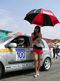 上がグリッドガールで下がレースクイーン(ウィキペディアから)