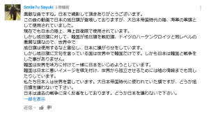 「日本の旭日旗は戦犯旗で、ナチスのハーケンクロイツと同じ。アジアの人たちを不快にさせるから、この旗は絶対に使ってはいけない」という書き込みは他にもあった。
