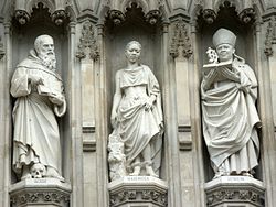 イギリス・ロンドンにあるウェストミンスター教会に、「20世紀の殉教者」の1人としてコルベ神父の像が飾られている(一番左)。
