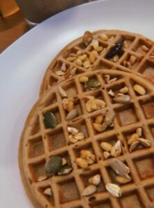 オランダ語(かドイツ語)でハチミツがいっぱいのハチの巣を「wafel」と言って、これがワッフルの語源になった。上の写真を見ると、たしかにハチの巣みたいだ。