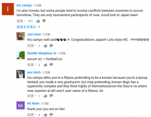 Think what you want, but I am yet to see a single Japanese comment on Korea’s FIFA videos. On the other hand nearly every video about Japan on YouTube has at least one pathetic Korean whining about comfort women and monkeys.