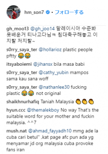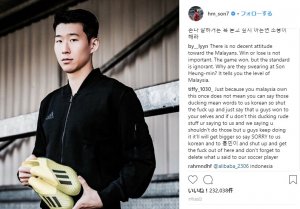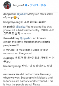 ソンフンミン選手のインスタグラムを見ると、韓国人とマレーシア人によるバトルのひどさがよく分かる。