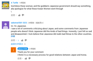 いまユーチューブで、「”Herstory” Comfort Women Animation – English」という動画のコメント欄を見たら、1時間前にも「日本政府は韓国人女性に謝罪しろ」という書き込みがあった。