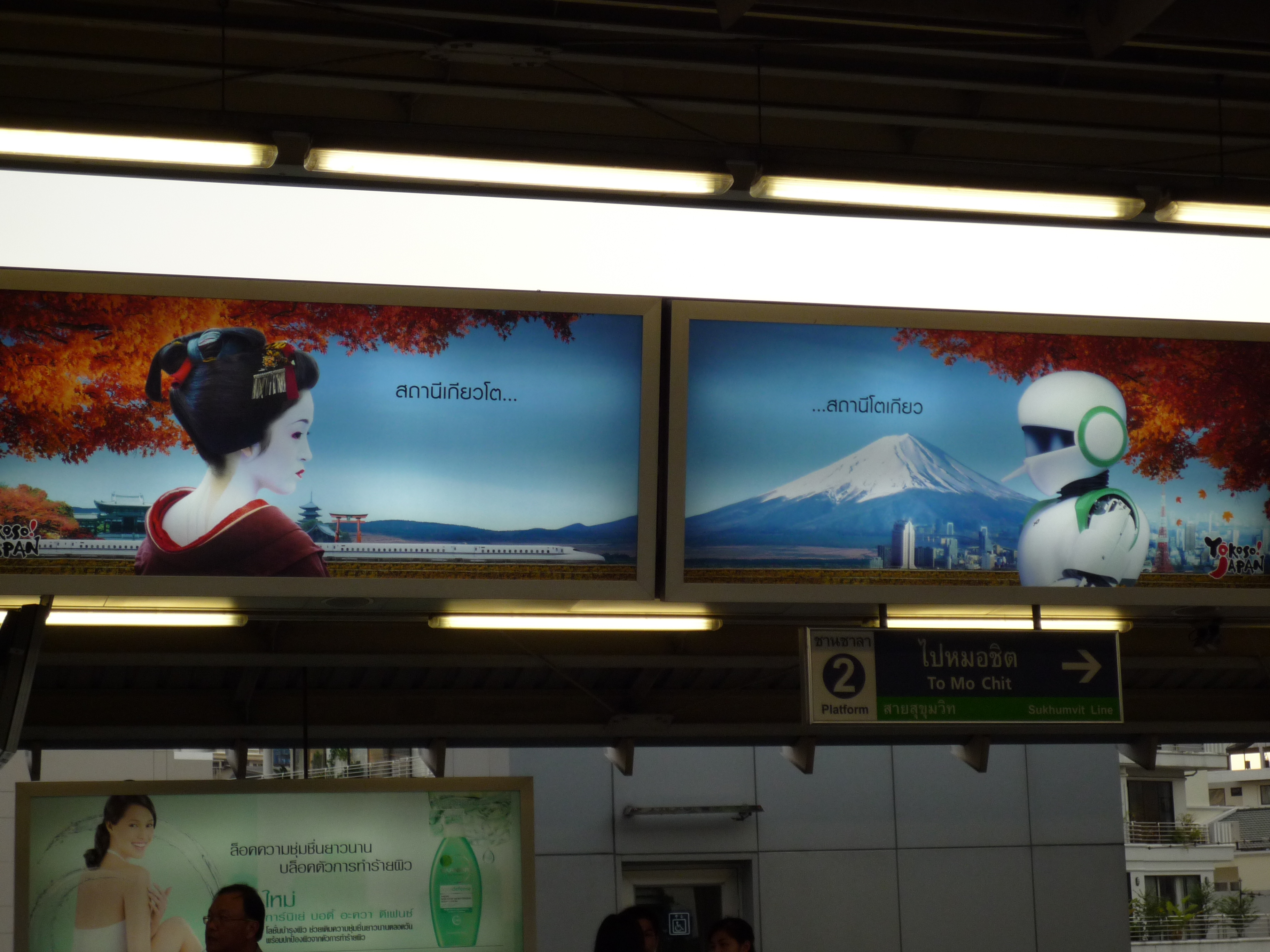 バンコクで電車(BTS)を待っていたときには、「Yokoso! Japan」という日本への訪問を呼びかける広告もあった。
